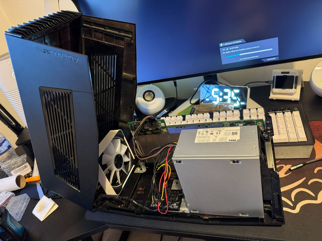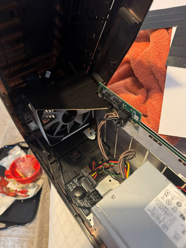 I have seen many people trying to cool these with all sorts of whacky crazy methods. Like hacking the top layer off of the large vapor chamber and so on. Why?. What was wrong with the initial idea of simply blowing air through the sodding thing?