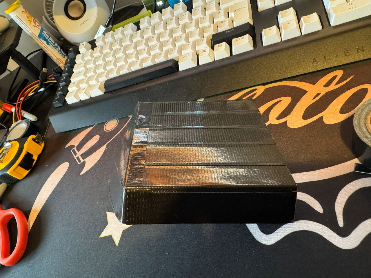 As such I did not destroy mine as I totally didn't need to. The answer was incredibly simple. Grab a roll of Gorilla extra strong duct tape and a thin sheet of card. Then you simply wrap both sides and you get a very stiff yet flexible material to work with. Then? start off with a fan with smooth sides and simply VHB FTW.