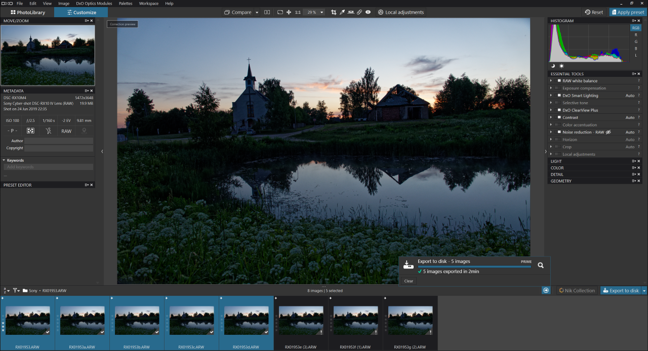 With DxO its better to batch a few images together as it actually processes images much more efficiently. You can see that as it actually processes two images at any one time.
