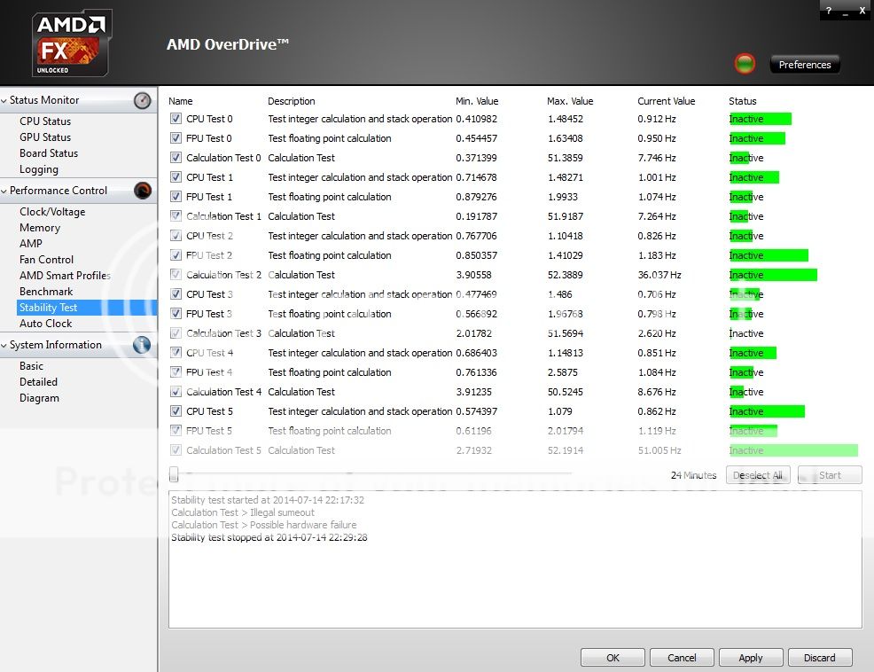 5. Try not to use synthetics to test an AMD. Whilst it may work well on Intel I can run Prime 95 for over an hour with no crashes on my 8320 @ 5.2ghz, yet, run Asus Realbench and as soon as I hit the multi tasking test I bomb. Realbench is great because it uses actual real life applications with which to stress your PC (Handbrake, GIMP, hi res video, etc).