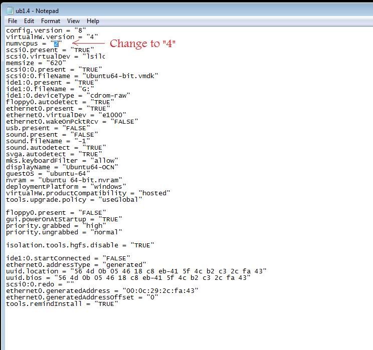 First locate the virtual machine and edit it with notepad.