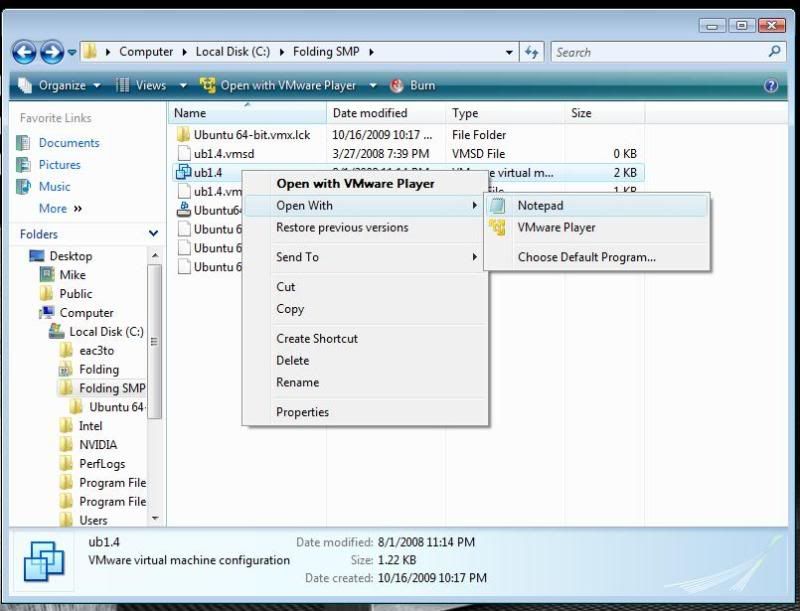 Normally when we use VMware, we end up running two instances if we have a quad or upto four instances with an i7. With VMware player 3.0 beta, you can utilize upto 4 cores in one virtual machine. It makes it easier than having to run two VM's, less memory utilization and if I want, you can fold on 3 cores leaving one open for a gpu.