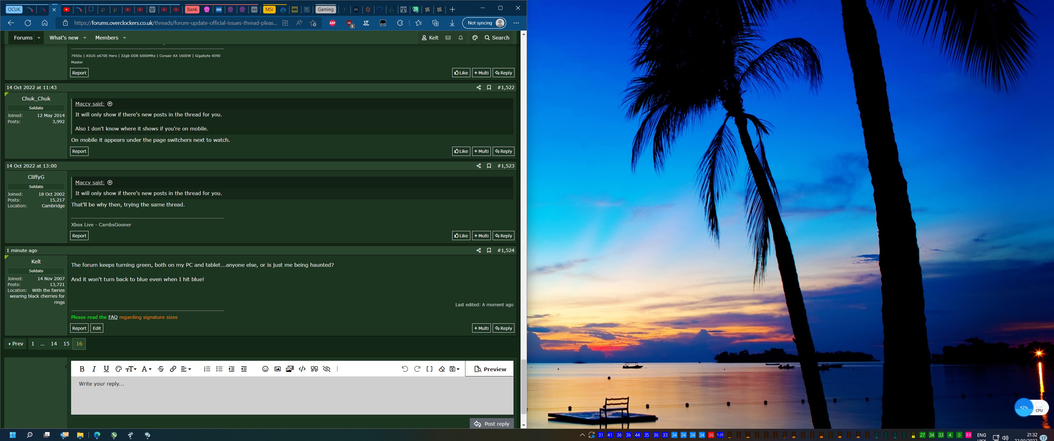 The forum keeps turning green, both on my PC and tablet...anyone else, or is just me being haunted?