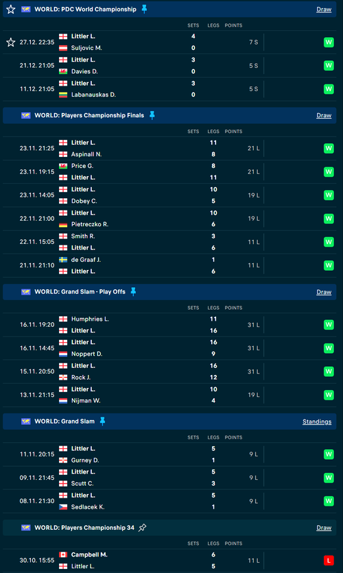 When Littler last lost a game, and btw I watched that match Campbell averages something like 110+ and performed five times above his typical level and snatched it at the death.