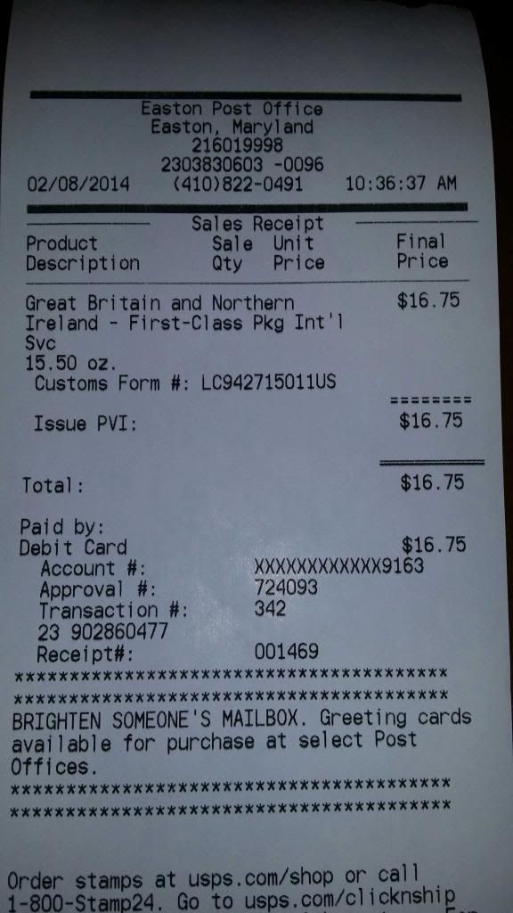 Ooo forgot to say that mine arrived safely with my friend out in the USA.