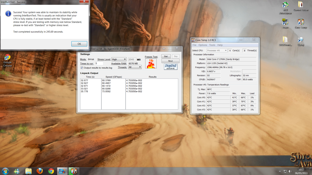 Having installed the i7 2700k, I have noticed temps are getting quite hot (and I have only been playing Trials Evolution Gold). Within 45minutes of game play, it reached around 65oC on 3 cores, with two cores at 68oC. That is a little bit too hot? I have a Arctic Cooler Rev 2 heatsink.