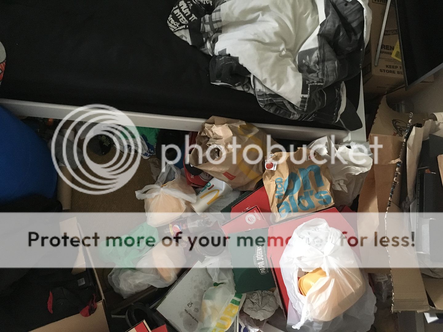 Whilst I have kept reminding him about the days the rubbish and recycling goes out, and left rubbish bags outside his door I haven't said outright that i've peeked inside his room and seen the mess, as I really don't know how he is gonna take it, I really am at a loss