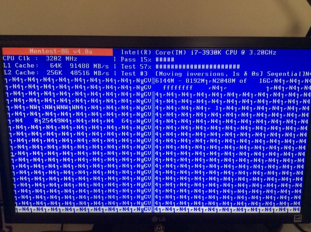 Well I took out 2 of the 4 sticks and started the test again and it is running normally so may either be something with sticks 3 or 4 or their slots it has run 2 passes on the first 2 sticks with no errors or weird screens at them moment so will let it run a few more then swap them over and start again