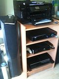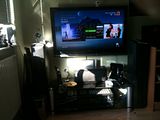 Gives an idea of the room size, the room is now without cupboards and the TV (now a 40" Sony Bravia) is back where i had the corner desk. Im missing quite a few pictures but i bought a PS3, got the new shiney xbox, Virgin V+ box(will be getting tivo soon)Ive lent the Paradigm sub to a mate and got myself a Mordaunt Short Alumni 9. I also upgraded my pc recently and got a dual screen setup going.