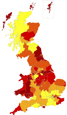 As with most rules, there is an exception. That being the City of London - I can only hypothesize that the sheer population density and constant in flux of immigrants (send them back!) means that the radioactive effect is spread around more with a few concentrations causing "orange" hotspots.