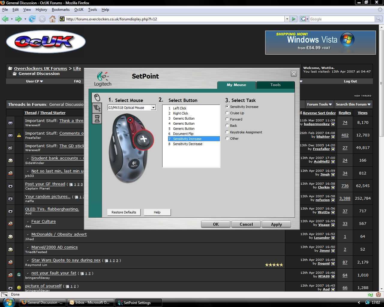 Just looked on the intellimouse software to see if you can assign a button on the mouse to page down. It seems more worried about allowing me to do completely useless actions instead, like open a spreadsheet?! I did like the "Instant viewer" though, bit sluggish however and the novelty has worn off already![]()