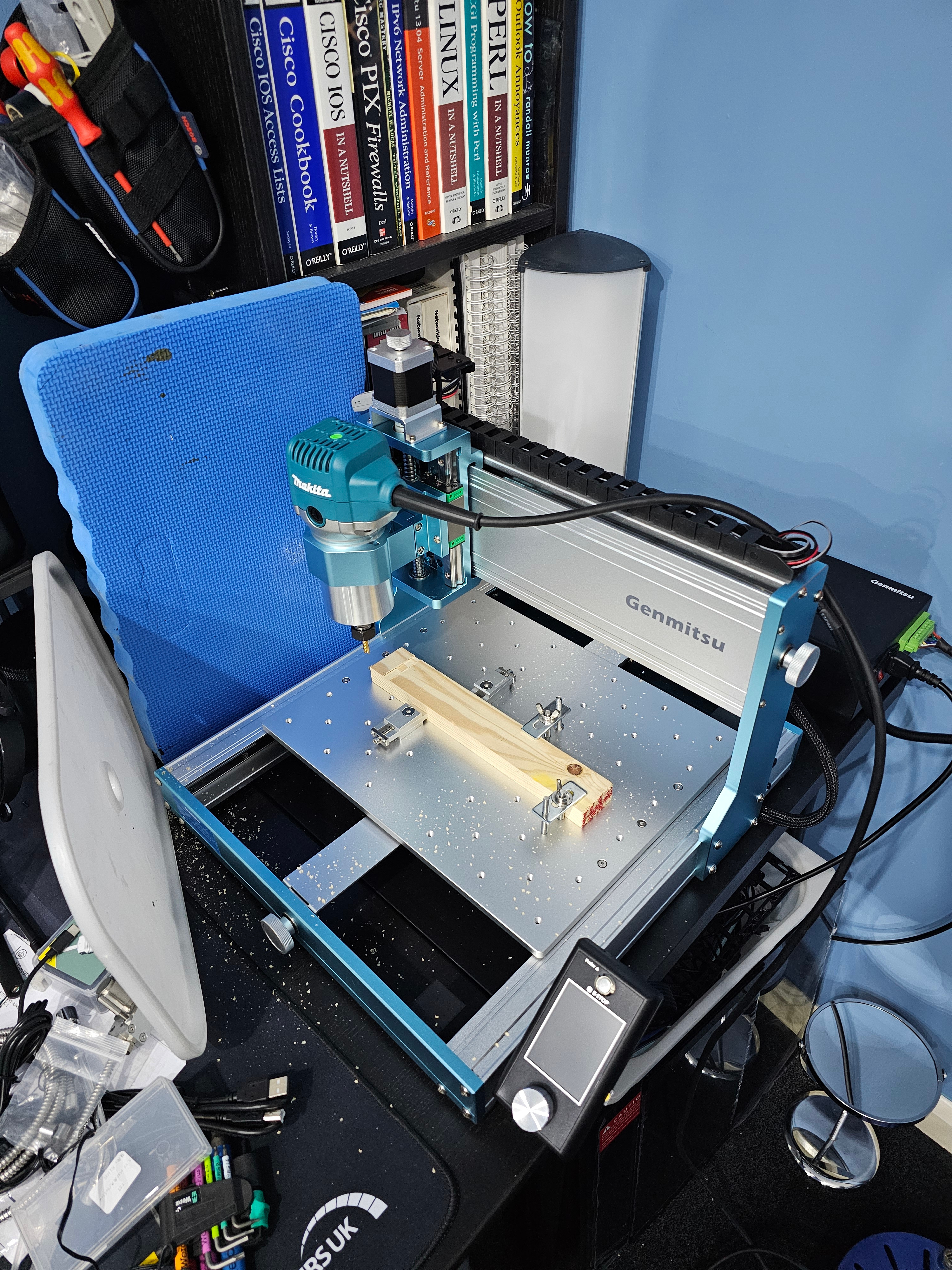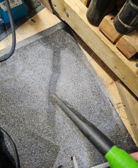 ...and this is why we have a shop-vac! ...and yes, that's a 3D printed adapter to mount a cheap crevice tool and a cheap brush tool rather than whatever ridiculous amount Festool want for such things. Why Festool if price is a concern then? Well, put simply, at the time it was the only rectangular one I could find and it perfectly fit the gap between the end of my workbench and the wall. Dead useful for not dying horribly and prematurely by breathing in all the dust from various cutting/sanding/cleaning type ops. Would recommend to anyone wanting to live longer than next year!