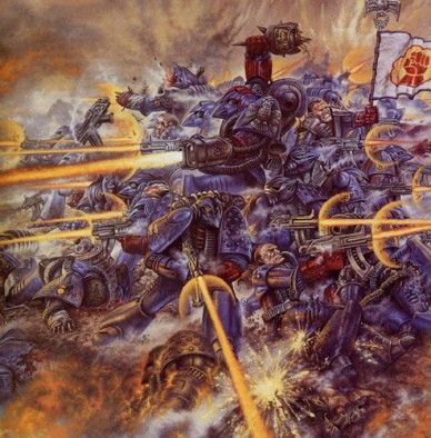 I just got back into this after a friend of mine (who has also picked it back up) bought me a Space Marine lieutenant. So, I did that one as practice then went ahead and bought a box of Intercessors to start building an army with. I decided to go for Crimson Fists because I remembered well this piece of artwork. My terrible pictures: