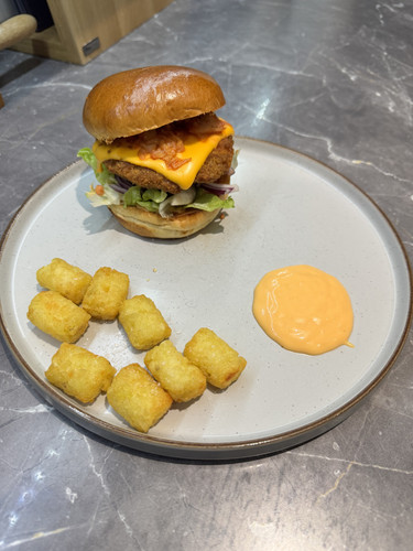 I did consider building the hash brown bites into a tower for the burger to top and the sauce as the moat but I was too weak